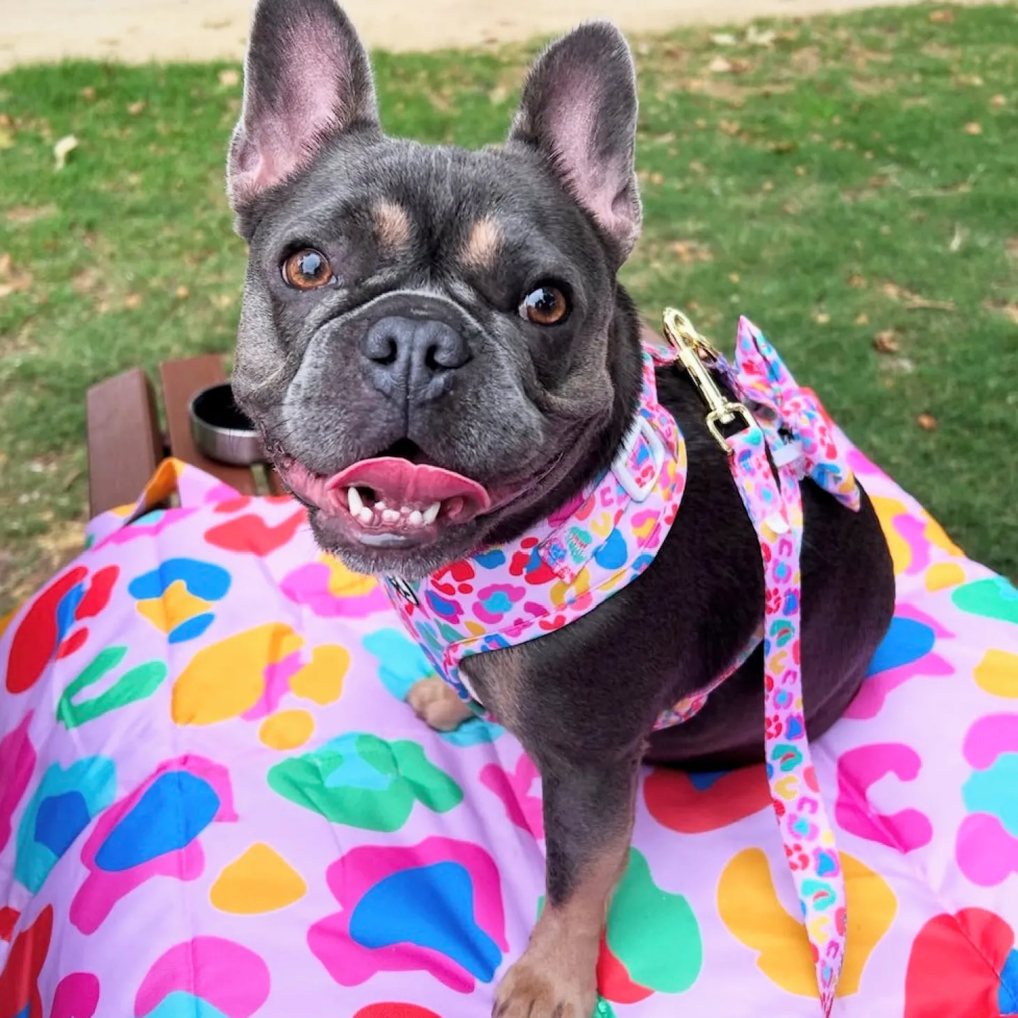 Matching Blanket, Harness, Lead, Poop Bag and Bow tie set available.