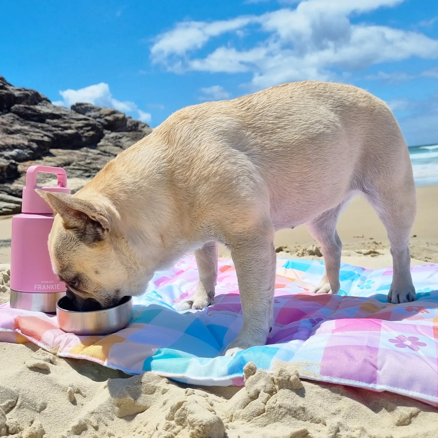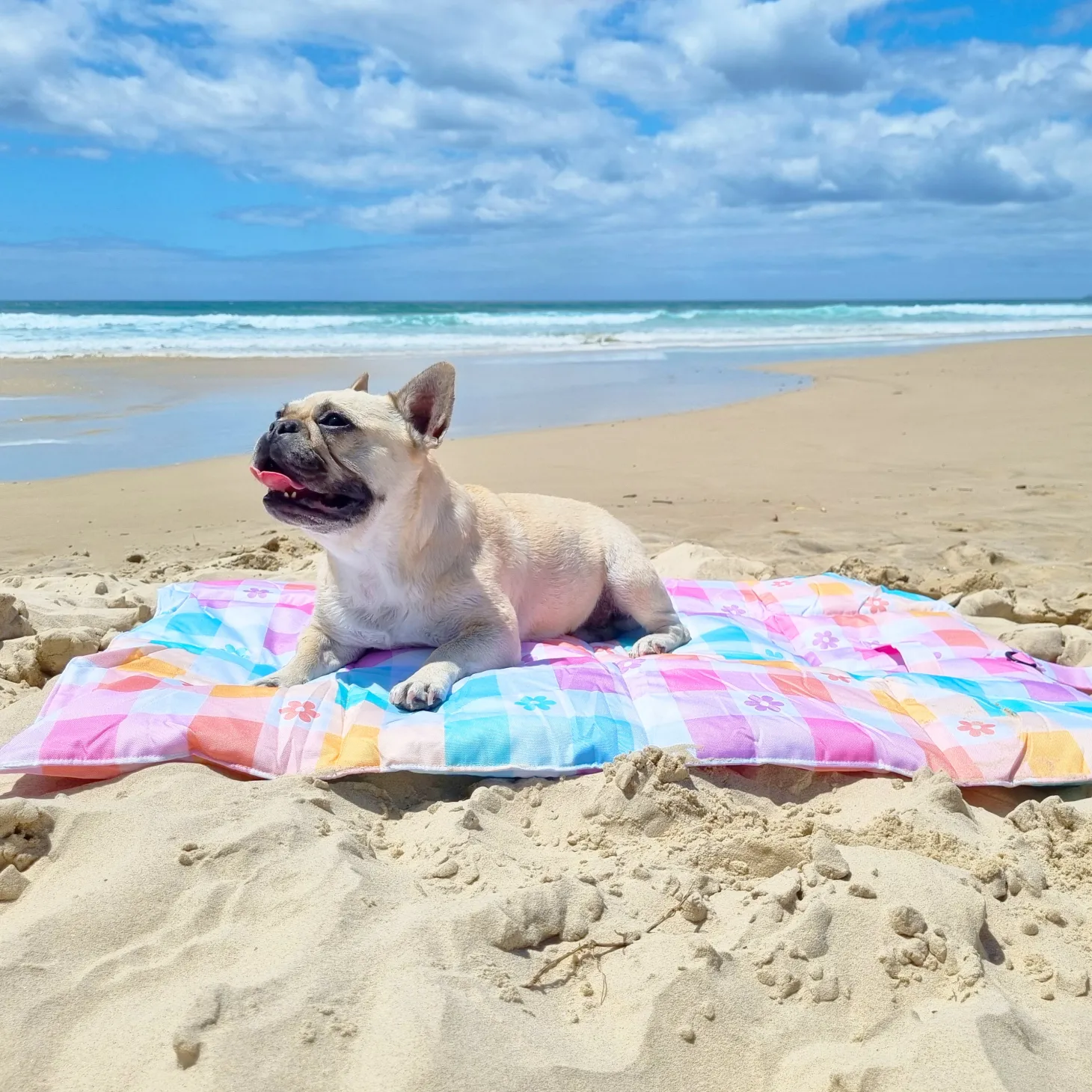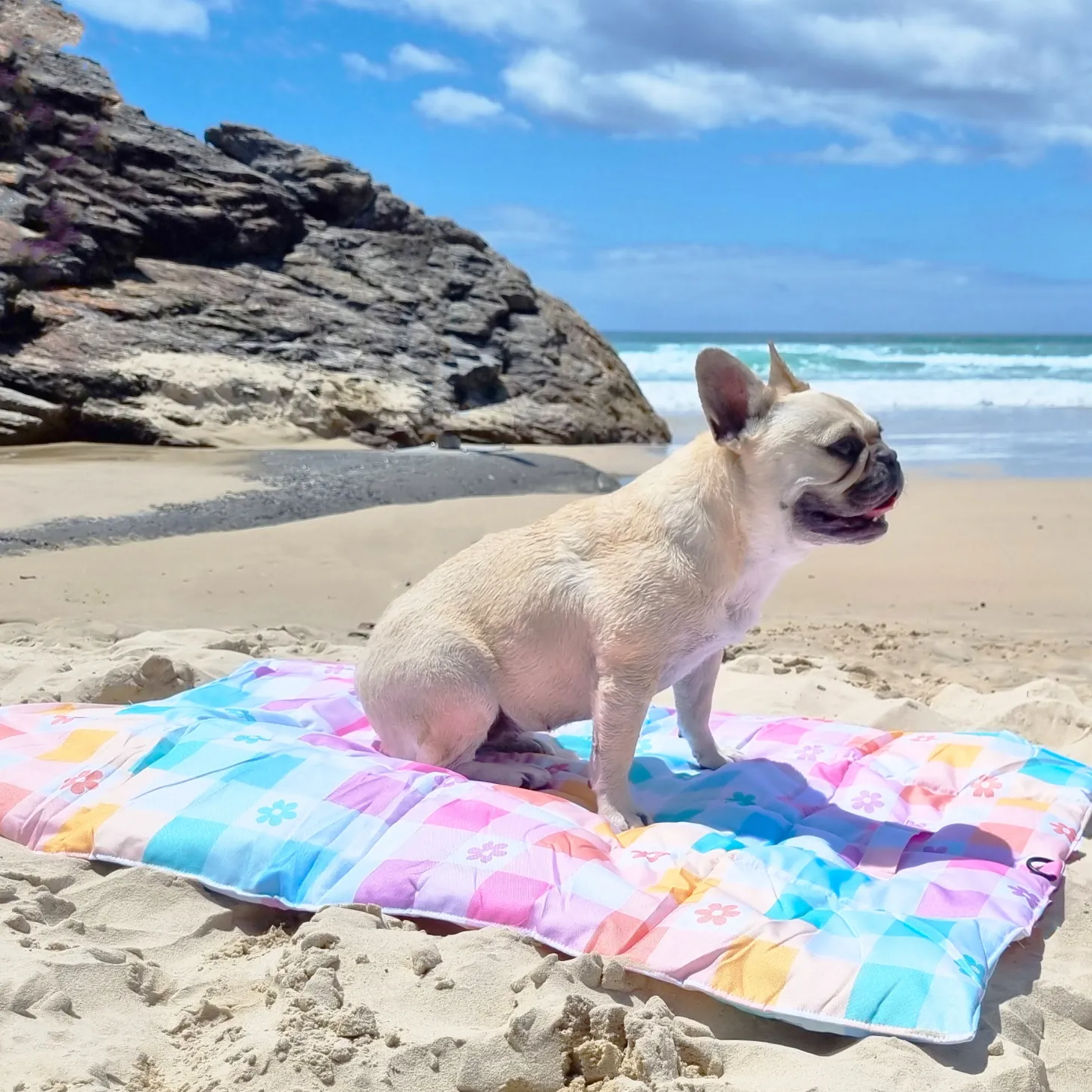 Our adventure mats are water-resistant and can be used inside or outside for your dog to lay on at picnics, café or restaurant coffee dates, the beach, or simply to put on the back porch for sunbathing.
